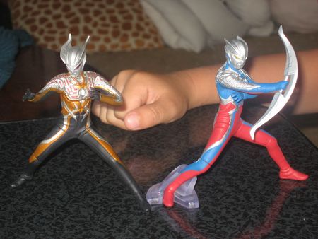 今日は、昨日の夜に子供部屋に並べられていた怪獣たちとの戦いで始まりました。