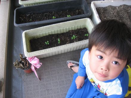 今日の朝は、先日種を蒔いたガーデニングの成長を確認することからはじまりました。